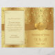 Este programa de Bodas presenta un patrón floral dorado, corazones y cintas impresas. Puede ajustar el texto de acuerdo con sus requisitos. Estos programas llegan planos y requieren doblar hacia abajo el medio para ensamblar