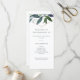 Este programa de boda elegante y de moda presenta una forma geométrica de rosa dorada falsa rodeada de hermosas ramas de vegetación.