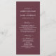 Elegante programa de bodas mínimo con caligrafía de escritura de moda blanca y tipografía moderna en un fondo burdeos. Simplemente agregue los detalles del programa de boda. Diseñado exclusivamente para usted por Happy Dolphin Studio. Si tiene alguna pregunta o petición, por favor contáctenos a happydolphinstudio@outlook.com. ¡Estamos encantados de ayudarle a hacer de su boda el día más hermoso!