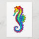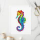 Arco de arcoiris, caballito de mar poligonal sobre fondo blanco. Tatuaje brillante.