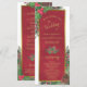 Este hermoso programa es perfecto para Navidades o bodas con temática de vacaciones. Presenta un diseño rústico de moda boho con vegetación invernal, como hojas huecas, bayas y ramas de pino en tonos rojos y verdes, con un falso marco dorado de Relieve metalizado. El texto presenta una elegante caligrafía de escritura con espacio para el nombre de la pareja, la fecha boda, la ceremonia, la fiesta nupcial y un breve agradecimiento. Festividad, elegancia y moda, este menú es una excelente manera de añadir clase y estilo a su boda, haciendo que sea fácil para sus invitados seguir con la ceremonia.