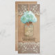 Hermosos programas de bodas rústicos con frasco de albañil sosteniendo hidrangea. Antecedentes - texturas de madera antiguas decoradas con encaje de marfil. Programas de boda perfectos para boda de granero