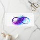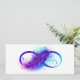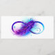 Símbolo infinito con una hermosa pluma pintada de color violeta y azul brillante sobre fondo blanco.