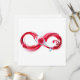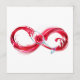 Símbolo infinito de flujo continuo de vino tinto vertiendo en vidrio de vidrio sobre fondo blanco.