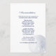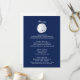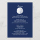 Tarjeta de información de invitación de boda de playa azul con dólar de arena y texto blanco en un lado y colores opuestos en el otro. Itinerario en un lado y alojamiento en el otro lado o cambiar a direcciones u otra información según sea necesario.