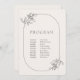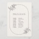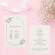 Este elegante programa de boda presenta un fondo crema minimalista adornado con delicado arte lineal botánico negro, añadiendo un toque atemporal y refinado. La portada describe el itinerario de su boda con texto claro y legible, mientras que la parte trasera enumera el orden de la ceremonia, detalles del cortejo nupcial y un sentido mensaje de agradecimiento. Ideal para bodas modernas o clásicas, este diseño combina sofisticación con simplicidad, asegurando que sus invitados se sientan informados y bienvenidos. Personalícelo con sus detalles únicos para que coincida perfectamente con su día especial.