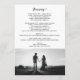 Un hermoso diseño de guiones de caligrafía blanca y negra mostrando la foto de la pareja. Un moderno diseño fotográfico de pareja boda con simples elementos minimalistas. Un diseño ideal de programa Itinerario moderno y boda para todo aquel que ame la caligrafía de guiones, diseños en blanco y negro y papel de boda fotográfico. También hay disponibles invitaciones de boda coincidentes y otros artículos de papelería.