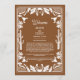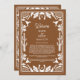 Un diseño moderno de estilo vaquero o vaquera occidental con elementos dibujados a mano de una calavera de vaca, herraduras, flores y ornamentos de cactus. Diseño de boda con borde floral marrón y blanco con flores dibujadas a mano, cactus, calavera de vaca y herraduras. Este diseño de boda contemporáneo moderno de estilo western country es ideal para todas las estaciones. Un diseño elegante de rancho, granja o estilo granero marrón y blanco con ilustraciones dibujadas a mano. Un diseño de tarjeta de programa de itinerario de boda con tema de vaquero Western Country con elementos elegantes modernos. También están disponibles invitaciones de boda y otros artículos de papelería coincidentes.