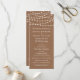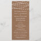 Sencillo pero elegante, las luces de cuerda de la rústica colección de bodas Kraft son un diseño impresionante con bonitas luces de cuerda colgantes blancas en el fondo de un efecto Kraft, perfecto para cualquier celebración boda rústica. Estos programas pueden ser personalizados para su ocasión especial y harían el pedido perfecto de servicio para su boda, ducha de novias, fiesta de compromiso, fiesta de cumpleaños y muchas otras ocasiones especiales. Agregue la redacción de su personalizado a este diseño utilizando los cuadros "Editar esta plantilla de diseño" situados en la parte derecha del elemento, o haga clic en el botón azul "Personalizar" para organizar el texto, cambiar los tipos de letra y los colores y añadir información o imágenes adicionales a este diseño. VER ELEMENTOS DE COINCIDENCIA PARA ESTA COLECCIÓN