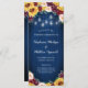 Estos programas de bodas cuentan con girasoles y flores borgoñas sobre un fondo de grano azul marino de madera con lámparas de tarro de albañilería. Personalízalos con tu texto. Estos programas de boda forman parte de una colección que incluye una gama de artículos de papel boda que puede personalizar para su boda. Por favor visite nuestra tienda para ver la gama completa.