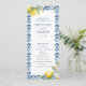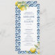 Añada un toque de encanto italiano a su ceremonia boda con este programa de bodas florales de limón. Diseñado con hermosos azulejos de limón color agua y azulejos azules, este orden de servicio boda combina perfectamente con su boda de destino, la ceremonia boda italiana o el boda de verano mediterráneo!