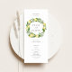 Añada un toque fresco y elegante a su ceremonia con esta tarjeta de programa de bodas de personalizable con una hermosa corona de limones con acuarela, flores suaves y vegetación exuberante. Diseñada para guiar a sus invitados durante todo el día, esta tarjeta de programa incluye espacio para personalizar los detalles de su boda, como la orden de la ceremonia, los nombres y las notas especiales. Las animadas obras de arte con limón y flores crean una estética natural y alegre, perfecta para bodas en el jardín, celebraciones al aire libre o eventos de verano. El suave acuarela combina el encanto rústico con la elegancia moderna, lo que le da un toque de alegría y de sentidos momentos. Póngalo en pareja con piezas de la colección para crear un aspecto cohesivo que gustará a sus huéspedes.