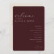 This elegant wedding program features a sophisticated maroon background with an inviting and timeless design. The typography is refined, adding a touch of classic charm to the overall look. It's perfect for capturing the essence of a formal and heartfelt celebration, ensuring every detail feels special on your big day. With its clean layout and subtle color palette, this program exudes warmth and grace, making it ideal for commemorating memorable moments during your ceremony.