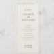 This elegant wedding program design exudes a classic and timeless style, perfect for a sophisticated celebration. The clean layout features refined typography that adds an air of formality and grace, while the minimalist color palette creates a serene and polished look. Ideal for marking a special occasion like a wedding, this design conveys a sense of warmth and tradition, making it a beautiful keepsake for guests to cherish. Its customizable text areas allow you to personalize details seamlessly, ensuring your unique story is beautifully presented.