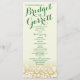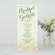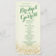 Las luces de marfil y oro de las luces de trineo diseñan el programa de boda con texto verde o cambian el color del texto como preferimos para complementar a tu boda.