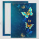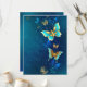 Oro volador, mariposa de joyas sobre fondo textural azul. Diseño con mariposas.