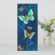 Oro volador, mariposa de joyas sobre fondo textural azul. Diseño con mariposas.