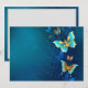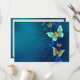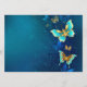Oro volador, mariposa de joyas sobre fondo textural azul. Diseño con mariposas.