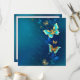 Oro volador, mariposa de joyas sobre fondo textural azul. Diseño con mariposas.