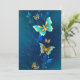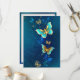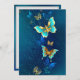 Oro volador, mariposa de joyas sobre fondo textural azul. Diseño con mariposas.