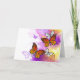 Naranja, mariposas monarcas detalladas sobre la luz, púrpura, pintoresco fondo pintado.