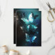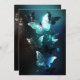 Mariposas brillantes nocturnas de menta sobre fondo abstracto negro.
