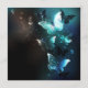 Mariposas brillantes nocturnas de menta sobre fondo abstracto negro.