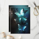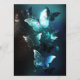 Mariposas brillantes nocturnas de menta sobre fondo abstracto negro.