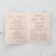 El diseño presenta su texto en formato tradicional de Masa Nupcial Católica, que se muestra en un fondo rosa champagne con un delicado borde de color plateado. El símbolo católico IHS con una cruz y ramas de palmera aparece en la parte delantera. Espacio para hasta siete damas de honor y padrinos. La parte de atrás incluye un mensaje de personalizable de gratitud y un monumento opcional para aquellos seres queridos que han pasado. También incluye espacio para tu foto. Todo el texto es personalizable. Diseñado para coordinar con la "Suite Boda simplemente católica". También disponible en blanco.