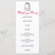 Programa de boda lindo con un frasco de albañil con iniciales y un corazón rosado en su etiqueta. Negro, blanco y rosa. Tres tipos de letra: una estándar angustiada, una escritura angustiada y una sans serif. ¡Limpio y romántico!