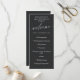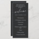 Un programa matte de cumpleaños negro con fuentes elegantes y un delicado guión caligráfico escrito son bienvenidos en la parte superior del programa. Añade tu programa, la fecha y el nombre de la persona que celebra su cumpleaños. Limpio, simple, atemporal y elegante.