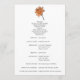 Nuestro elegante programa de bodas con un impresionante diseño de flores de crisantemo naranja en la parte superior para un toque de encanto. Este programa de excelente diseño incluye fuentes tradicionales para mostrar tu fiesta de boda y detalles importantes del programa para tu día especial. Asegúrate de que tus huéspedes dispongan de toda la información que necesitan y añade un toque de sofisticación a tu decoración boda con este bonito programa.