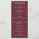 Una tarjeta de programa elegante y moderna con un fondo de ciruela aterciopelado. El título aparece en una letra script animada y los detalles aparecen en una tipografía serif contenida y sofisticada.