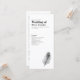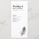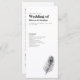 La tarjeta de diseño minimalista Wedding Day Program incluye un elegante ilustracion de arte de la línea de plumas de pavo real con un tema clásico de color blanco y negro. Diseño tipográfico moderno y limpio, esta pieza está lista para su personalizar con los detalles de su día especial. Como parte de una gama cada vez mayor de artículos de papelería, por favor, navegue por la suite Boda Black Peacock Feather para ver los artículos que coincidan.