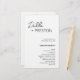 Moderno programa de bodas en blanco y negro que presenta un diseño sencillo y mínimo con el nombre de la novia en un guión elegante y el nombre del novio en una fuente contemporánea sans serif. Debajo, en la esquina inferior derecha, están los detalles del evento y el orden de la ceremonia en un diseño minimalista. La parte trasera tiene tu fiesta de boda y mensaje de agradecimiento.