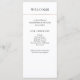 Este moderno y elegante programa de bodas presenta un texto negro sobre un fondo blanco, con una franja de oro falso rosa en la parte superior.