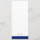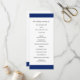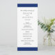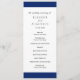 Moderno programa de bodas azul marino con una banda atrevida en la parte superior e inferior. Sus nombres están en un tipo de letra serif clásico y sus detalles están en una combinación de un tipo de letra sans serif moderno y un guión elegante. La parte posterior tiene una banda en la parte inferior junto con su monograma. Este diseño sencillo y mínimo, con una redacción tradicional, es ideal para un boda formal.