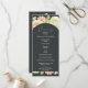 El programa de ceremonias bodas muestra sus detalles en la parte delantera y trasera con letras blancas de moda. Hermosas flores acuáticas - hortensias blancas y verdes, rosas rosas y cremas, margaritas, tallos pequeños y hojas acentúan el frente con tu información sobre un overlay oscuro. COINCIDIENDO con los artículos de nuestra tienda.