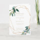 Este programa de moda geométrica dorada de eucalipto plegado es perfecto para un boda rústico. El diseño se basa en el follaje de eucalipto verde que adorna un marco geométrico dorado. Incluya un presupuesto o mensaje corto, orden de servicio, fiesta de boda y mensaje de agradecimiento.