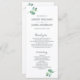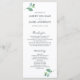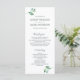 Moda programa de boda mínimo con un guión de caligrafía elegante fuera de negro y un toque elegante de follaje de eucalipto verde sobre un fondo blanco. Simplemente agregue los detalles del programa de boda. Diseñado exclusivamente para usted por Happy Dolphin Studio.