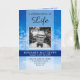 Modern Celebration Life Funeral Blue Sky Program En la portada, una foto de tu ser querido junto con su nombre y años de vida. Dentro puede escribir el obituario y el programa. En el frente y en el interior hay un fondo azul del cielo. En la parte posterior puede agregar reconocimientos.