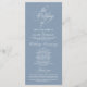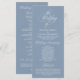 Modern Classy Wedding Program card. It is designed with scroll accent that can be personalised with custom/ personalised text for your bridal party, ceremony details, memorial notes and thank you message. If you are looking for other program card types and sizes, please search through our matching program card collection section. Dusty blue theme.