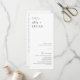 Guíe a sus huéspedes durante todo el día con este moderno programa de ceremonia boda. Con un diseño minimalista y elegantes títulos de escritura, este diseño de doble cara es perfecto para ceremonias no religiosas o sencillos formatos de boda. Proporciona espacio para esbozar el cronograma de la ceremonia, los participantes y un breve mensaje de agradecimiento.
