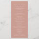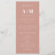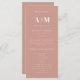 Una moderna tarjeta de programa de boda rosa polvoriento. Personaliza con toda la información de tu ceremonia de boda, incluyendo un mensaje de agradecimiento, las iniciales y la fiesta de bodas al fondo.