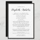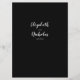 Modern Elegance El programa y menú de recepción de la boda blanca y negra presenta los nombres de las parejas en una hermosa caligrafía y cita en un tradicional serif por un lado. En el reverso hay un borde negro mínimo con el orden de recepción, los altavoces y las descripciones del menú. Personaliza con tus detalles del día de tu boda. Este diseño está disponible en una variedad de formatos y productos de eventos bodas.