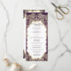 Esta tarjeta de programa de bodas presenta un llamativo fondo morado oscuro con detalles elegantes de damasco dorado que le confieren un aspecto lujoso y moderno. La portada resalta los nombres de la pareja dentro de un medallón de borde dorado, mientras que la página de atrás presenta los detalles completos del servicio boda enmarcados con florecientes decorativos. El rico tono morado oscuro combinado con el oro resplandeciente crea un diseño sofisticado, perfecto para ceremonias formales y una papelería de boda digna de conservarse.