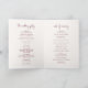 Elegante programa de bodas con un diseño sencillo y clásico con sus nombres en un guión moderno y sus detalles en una combinación de tipografías tradicionales serif y cursiva.