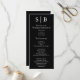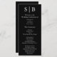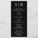 El programa clásico de bodas en blanco y negro monogramado incluye la información de la fiesta de boda.