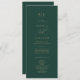 Este romántico programa de bodas con caligrafía verde es perfecto para un simple boda. El moderno diseño clásico presenta vistosos remolinos y florituras con magnífica y elegante tipografía de oro con imitación de champagne a mano. Incluya las iniciales de las parejas, los nombres de la pareja, la fecha y ubicación del boda, mensaje de agradecimiento, orden de servicio, fiesta de boda y un monumento opcional "en memoria amorosa". Nota: Este diseño no tiene Relieve metalizado oro real. Es un gráfico de alta calidad hecho para parecer un Relieve metalizado dorado.
