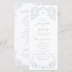 Elegante marco vintage floreciente con el monograma de la pareja y el elegante tipo de letra de guión en color azul polvoriento, moderno y elegante, grandes programas de boda para boda clásico moderno, bodas vintage de lujo y boda formal romántico.